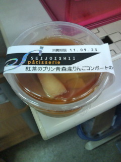 紅茶のプリンと青森産りんごコンポートのせ